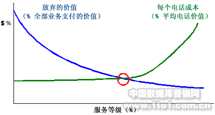 每個(gè)呼叫中心因當(dāng)?shù)貑T工成本、平均電話價(jià)值、單位電話成本以及安裝等費(fèi)用支出的不同,營(yíng)運(yùn)方式也不同。但繪制曲線找出效能和效率的平衡點(diǎn)是可能的。