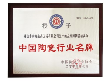由中國陶瓷工業(yè)協(xié)會、甘肅省白銀市人民政府主辦,白銀市平川區(qū)人民政府承辦的首屆中國西部(平川)陶瓷峰會暨平川陶瓷文化節(jié),于2009年8月19日—20日在甘肅省白銀市平川區(qū)會展中心隆重舉行。期間,由中國陶瓷工業(yè)協(xié)會組織眾專家評審的“中國陶瓷行業(yè)名牌”產(chǎn)品企業(yè)亦在大會中隆重舉行了頒獎儀式,益高(EAGO)衛(wèi)浴憑著科技領(lǐng)先、品牌領(lǐng)先、市場領(lǐng)先、管理領(lǐng)先的良好發(fā)展優(yōu)勢,在眾多陶瓷衛(wèi)浴企業(yè)中脫穎而出,獲得中國陶瓷工業(yè)協(xié)會主辦方及專家評委們的一致好評及推薦,并被授予了“中國陶瓷行業(yè)名牌”榮譽(yù),無疑,喜獲國陶瓷行業(yè)名牌”再次增加了益高衛(wèi)浴乃為中國衛(wèi)浴領(lǐng)域崛起的強(qiáng)勢品牌、中國知名品牌的份量,證實(shí)了益高衛(wèi)浴有策略、有步驟地步入了最具規(guī)模、最高水準(zhǔn)的國際高端衛(wèi)浴品牌!