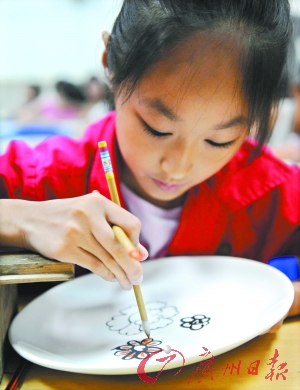 我要畫多拉A夢,奧特曼、寶蓮燈……把最新潮的動漫卡通用傳統(tǒng)的廣彩技藝畫在潔白的瓷碟上,經(jīng)過燒制,就是一件美麗別致的廣彩動漫作品了。