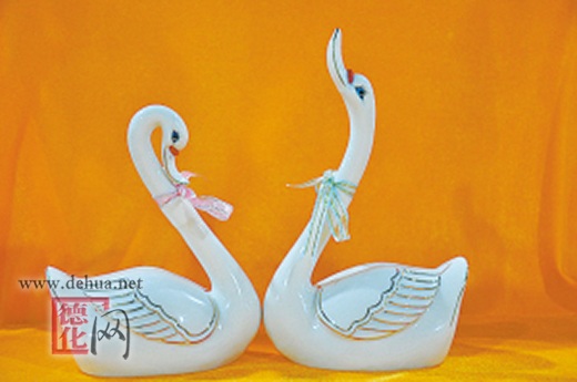 一對含情脈脈的“天鵝”,從傳統(tǒng)的藝術(shù)瓷雕欣賞提升到實(shí)用器型。這是德化縣倡導(dǎo)藝術(shù)瓷日用化的成果,這一轉(zhuǎn)變也得到臺(tái)灣客商的青睞。日前,由泉州戴云文化傳播有限公司和臺(tái)灣聯(lián)宏科技聯(lián)袂打造的“天鵝”酒瓶已開始銷往臺(tái)灣。