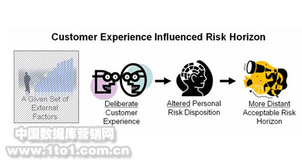 在給定的外部因素條件下 (或者像經(jīng)濟(jì)學(xué)家喜歡說(shuō)的,如果外部因素保持不變),經(jīng)過(guò)深思熟慮和有持續(xù)性的客戶體驗(yàn)將改變?nèi)藗兊娘L(fēng)險(xiǎn)配置,并在一定程度上擴(kuò)大風(fēng)險(xiǎn)容限。重新提高風(fēng)險(xiǎn)容限的做法將導(dǎo)致客戶可接受風(fēng)險(xiǎn)范圍呈現(xiàn)一定程度的放大。從理論上來(lái)說(shuō),客戶體驗(yàn)考慮的越周到、持續(xù)性越好,那么客戶可接受的風(fēng)險(xiǎn)范圍就越大。換句話說(shuō),F(xiàn)SB管理客戶體驗(yàn)的能力越強(qiáng),客戶愿意承受的風(fēng)浪就越大。當(dāng)然,每個(gè)客戶都有自己的初始設(shè)定。我們得到的洞察是這個(gè)設(shè)定本身在某種程度上可以通過(guò)CEM進(jìn)行調(diào)節(jié)。