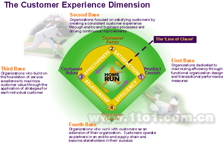 每個層次都代表企業(yè)從以產(chǎn)品為中心到真正的以客戶為中心的道路上的一個里程碑,同時也代表著為大多數(shù)企業(yè)所忽視的客戶體驗維度。Round以其聞名于世的棒球模型向我們展示了這個歷程。