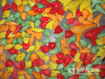 聞福建德化有一年輕男子創(chuàng)作出陶瓷新品——陶笛。筆者聞訊趕到,走進方先生的工作室,形色各樣的小陶瓷器件映入眼簾,有紅、黃、綠等顏色,呈槍形、潛水艇形、扁形、球形以及各種動物的頭像形狀,十分精致小巧,惹人喜愛。
