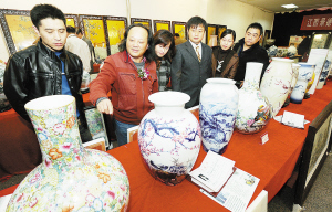 10月31日,“景德鎮(zhèn)陶瓷藝術(shù)全國巡回展”(天津站)開幕,展會(huì)現(xiàn)場 展示了形象逼真的陶瓷桑葉與蠶、陶瓷樹樁、婉約細(xì)膩的陶瓷梅蘭竹菊……件件精美獨(dú)特,其中首次來津展示的“九龍壁”受到各界人士的關(guān)注,F(xiàn)場還進(jìn)行了白瓷板和白盤的手工繪畫、燒制,讓津門百姓大飽眼福。