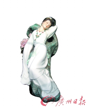 石灣大師莊稼和潮州大師陳鐘鳴合作的仕女瓷塑作品。