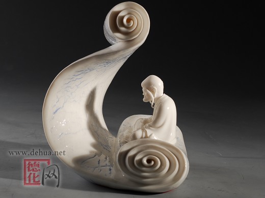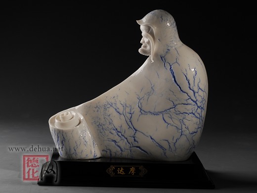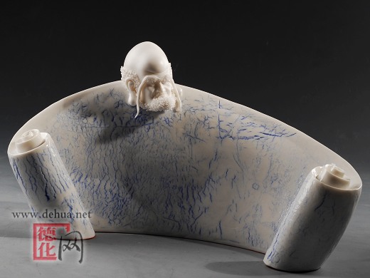 該系列作品首創(chuàng)以中國特有的卷書為主體,采用研究所最新研制成功的窯變青花瓷為背景,一道道可遇不可求的窯變裂紋,象征著“大千世界千變?nèi)f化,功到自然成”的禪宗思想。作品立意高遠,構思新穎,精雕細琢,工藝精湛,人書合一,妙趣天成,創(chuàng)造性的表現(xiàn)了“博大精深,源遠流長”的佛教文化內(nèi)涵。