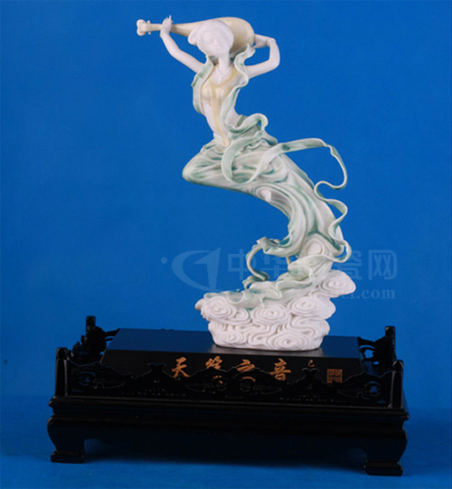 陳列在藝韻瓷莊展廳的瓷塑精品——《天籟之音》就是德化瓷塑精美材質(zhì)與高難度工藝的一個(gè)很好的表現(xiàn)。此作品系由福建省德化縣藝韻陶瓷研究所副所長(zhǎng)、福建省工藝美術(shù)師陳能謨所精心研究創(chuàng)作,以中國(guó)白瓷與高溫窯變結(jié)晶釉相結(jié)合,配上飛天優(yōu)雅的高難度造型,更是把陶瓷的燒制技術(shù)推上一個(gè)新的臺(tái)階,在第五屆福建省工藝美術(shù)精品“爭(zhēng)艷懷”大賽中榮獲優(yōu)秀獎(jiǎng)。
