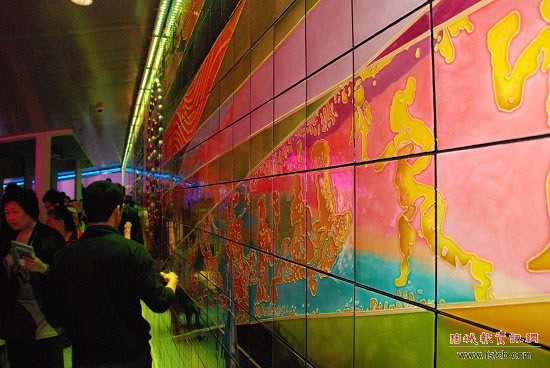 除了這幅壁畫(huà),河南館通道上和外墻中隨處可見(jiàn)不同風(fēng)格的瓷瓶陶罐,記者在現(xiàn)場(chǎng)采訪了河南省參與2010年上海世博會(huì)組委會(huì)辦公室聯(lián)絡(luò)員、中國(guó)國(guó)際貿(mào)易促進(jìn)委員會(huì)河南省分會(huì)雷保平處長(zhǎng),他表示這次壁畫(huà)的設(shè)計(jì)和展品的選擇都是為了配合河南“國(guó)之中?城之源”的主題,反映河南歷史的厚重的文化和現(xiàn)代的繁榮,“中國(guó)有5大名瓷中的官瓷、汝瓷、汝瓷都在河南,世博會(huì)河南館除了汝瓷每種都有幾件作品,此外還有鄭商瓷和刻字瓷器等。