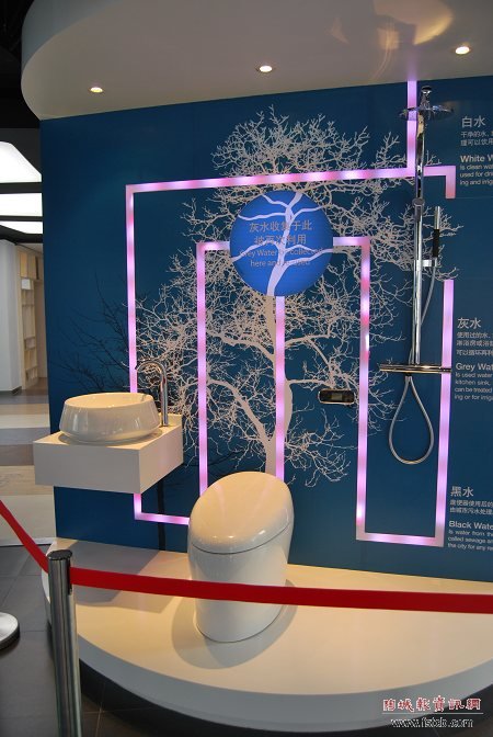 位于“滬上·生態(tài)家”三樓的科勒展區(qū)強調(diào)互動與體驗,把老上海的建筑風格和藍色水滴的設(shè)計元素融為一體,通過“灰水光影演示區(qū)”、“灰水循環(huán)演示”、“未來衛(wèi)浴空間”、“電腦互動墻”等主題區(qū)域向游客展示了科勒節(jié)水環(huán)保的理念。據(jù)現(xiàn)場工作人員介紹,“在該展區(qū)里,游客可以在精心布置的未來生活場景中體驗衛(wèi)浴環(huán)保帶來的樂趣。”