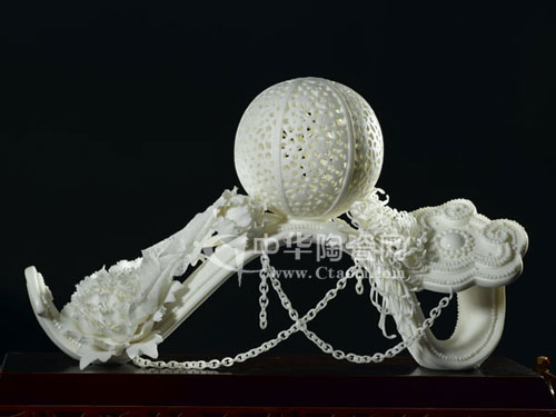 《大地飛歌》取義于廣西智慧與才華、愛與美的象征——“歌仙”劉三姐,作品精彩演繹了劉三姐踏著竹排,手持繡球,唱著山歌的美麗形象,并在歌舞中傳達出“和平要由我們演奏,友誼要讓我們歌頌,未來要靠我們描繪”的共同心聲!洞蟮仫w歌》成為“2008年中國—東盟博覽會指定國禮”,并載入東盟史冊,并被廣西博物館永久珍藏。《雀之靈》靈感來源于云南的傣族舞蹈,通過建白瓷淋漓盡致地表現了富含云南民族傳統(tǒng)文化的傣族舞姿,超凡脫俗。作品并獲得多項榮譽,05年榮獲“第七屆中國工藝美術大師精品博覽會”金獎,07年榮獲福建省首屆創(chuàng)新設計評比金獎,更名為《憑海臨風》,08年被英國珍品館永久收藏,09年被云南省博物館永久收藏。《圓滿如意》中的球就是代表圓滿,并配以如意,造型簡潔、意境深邃。(蘇曉霞)