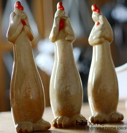 超可愛的造型,三個陶瓷小雞憨態(tài)可掬,或害羞狀、或驚訝狀、或掩面,直直站立,肥肥的身子,天真浪漫。看了它們,所有的疲倦一掃而光了,放在居室里面,能給屋子帶來充分的靈性。