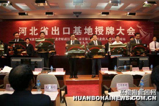 唐山市政府副秘書(shū)長(zhǎng)邢京林、市商務(wù)局長(zhǎng)王志軍代表唐山市出口基地領(lǐng)取牌匾