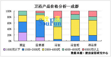 浴室柜、淋浴房價格主要分布在2000-4000元區(qū)間,市場覆蓋率均在50%以上,高于重慶地區(qū)市場覆蓋率。