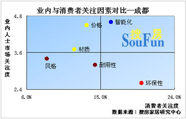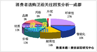 調(diào)查結(jié)果顯示,成都地區(qū)27%的消費(fèi)者將環(huán)保性作為自己選購衛(wèi)浴時最關(guān)注的因素,衛(wèi)浴產(chǎn)品的節(jié)水作用最受消費(fèi)者重視。與其他城市相比,衛(wèi)浴產(chǎn)品的智能化、耐用性對成都消費(fèi)者的影響較大,占比分別為16%、14%;其次較受關(guān)注的是價格因素,高性價比衛(wèi)浴產(chǎn)品一直受消費(fèi)者青睞。