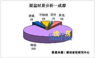對成都衛(wèi)浴市場面盆材質(zhì)的調(diào)查顯示,超八成面盆為陶瓷材質(zhì)面盆,占比84%,陶瓷材質(zhì)面盆在市場上居絕對壟斷地位;款式多樣的玻璃材質(zhì)面盆市場銷量占4%,在成都受歡迎程度較低;清洗便捷的不銹鋼面盆市場份額同樣不高,占比6%;石材類面盆僅占1%。
