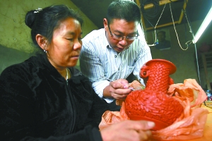 最讓夫婦倆自豪的是,他們的一件瓶高近一米,全身雕滿牡丹的脫胎漆器“富貴吉祥”大花瓶,被深圳市政府看中,以12.8萬元的高價購買,當(dāng)作珍貴禮物送給外國友人。