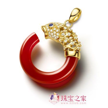 推薦理由:此吊墜的材質(zhì)是采用5A級天然紅瑪瑙、18K金和鉆石。既有紅色本身所代表的吉祥喜慶,又有魚躍龍門的美好祝愿。