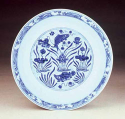 明代景德鎮(zhèn)御窯廠燒造的宣德青花瓷器,在中國陶瓷發(fā)展史上具有很重要的地位。它以其古樸、典雅的造型,晶瑩艷麗的釉色,多姿多彩的紋飾而聞名于世,與明代其他各朝的青花瓷器相比,其燒制技術(shù)達(dá)到了最高峰,成為我國瓷器名品之一,其成就被稱頌為“開一代未有之奇”。宣德官窯的青花燒造數(shù)量是空前的,據(jù)《大明會典》記載,宣德八年(1433),朝廷一次就下達(dá)了要景德鎮(zhèn)燒造龍鳳瓷器四十四萬三千五百件的任務(wù)。其中青花占大多數(shù),由此可見其燒造規(guī)模、數(shù)量之大。產(chǎn)品不僅供宮廷日常生活之需,而且也作為商品大量行銷海外,以及對國外入貢者的答贈,成為東西文化交流的見證。