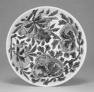 清康熙素三彩花果紋盤,口徑:24.8公分,臺灣樂山堂藏。