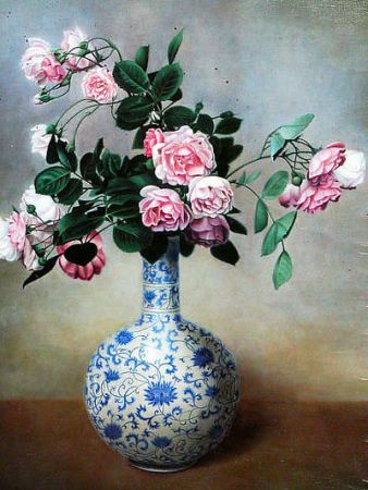 玫瑰花的光影變換與青花瓷瓶的隱約釉痕,靜靜地吸引著人們的目光。青花或硬朗明快,或細(xì)膩婉約的線條,給視覺旅程加了停頓的休止符。