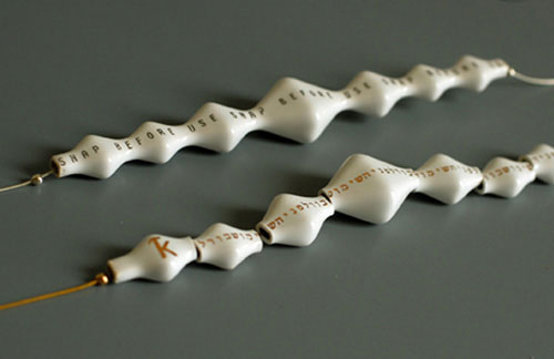 來自 Studiokahn 的陶瓷項(xiàng)鏈,當(dāng)?shù)侥闶种械臅r(shí)候項(xiàng)鏈?zhǔn)且粋(gè)整體的,需要你輕輕敲碎項(xiàng)鏈中最細(xì)的環(huán)節(jié),直到變成可以佩戴的項(xiàng)鏈。有24K金和925銀、四個(gè)不同的形狀可供選擇。