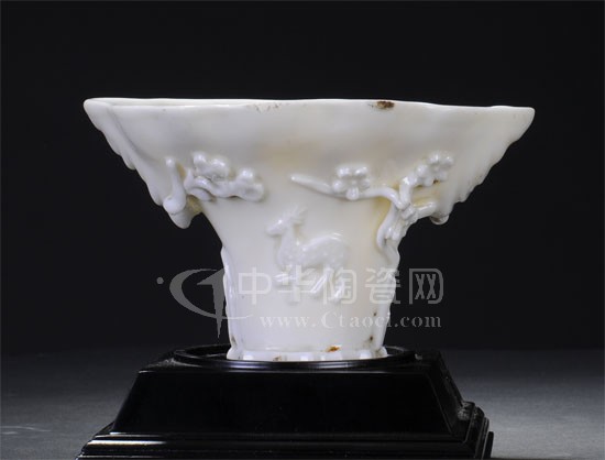 德化龍虎紋杯,共兩件,一為孩兒紅瓷,一為象牙白瓷,胎薄細膩,雕像栩栩如生,可謂是奇珍異品。龍虎紋杯口徑為13.8cm,高為10.2cm,大約呈橢圓形,雕有各種動植物等浮雕紋飾。傳統(tǒng)觀念認為,杯的上面部分為天,下面部分為地或海,因此,此龍虎紋杯也不例外,上面部分沿口雕有松樹、梅花樹、龍頭等,下面部分雕有老虎、鹿、鯉魚等,采集世間美好的事物表達最美好的祝愿。潘先生在收藏此珍品后激動地帶到《收藏盛世》進行鑒定,被鑒定為明末的藝術品,在德化窯中之窯變?yōu)橘摺?/p>