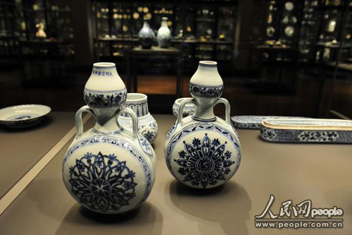 大英博物館中國(guó)館館藏的清青花扁壺 攝影:于世文