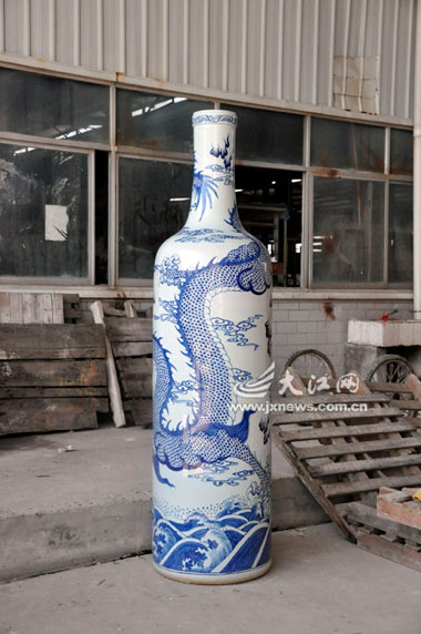 該企業(yè)董事長董克勤告訴記者,為了體現(xiàn)景德鎮(zhèn)的陶瓷文化和他們的企業(yè)文化,公司決定燒造一只世界上最大的陶瓷葡萄酒瓶申報吉尼斯世界紀錄。經(jīng)過技術(shù)工人長時間設(shè)計和生產(chǎn),在瓷博會開幕前夕,這個高達2.26米的青花葡萄酒瓶燒造成功,如果注入葡萄酒,足足可以裝入250公斤。