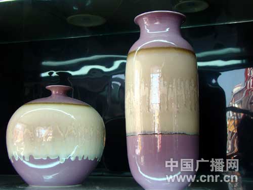 記者摸著幾種造型各異,光滑鮮艷的裝飾藝術(shù)瓶,手感十分舒適,看上去就像玻璃與琉璃的效果那樣亮麗,且顏色從鮮艷到漸變,產(chǎn)生了不同過度色的獨(dú)特效果。問起二人今后的打算,二人你一言他一語的說道:我們今后想往實(shí)用性上發(fā)展,要爭取在器形、釉色等方面創(chuàng)新的同時(shí)加上實(shí)用性的因素,燒出一些自己認(rèn)為滿意的東西來,雖然難度有但我們有信心做下去……