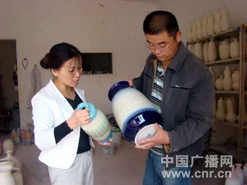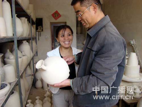 為了進(jìn)一步了解陳新初這對(duì)夫婦兩年多來對(duì)自己刻意經(jīng)營的陶瓷產(chǎn)品的發(fā)展,10月20日上午,記者如約來到了他們的工作間。陳新初、黃國珍夫婦也較為詳細(xì)地跟記者說起了他們自己的故事。陳新初向記者說:幾年前他們夫婦都是景德鎮(zhèn)國營陶瓷廠的下崗職工,然而,下崗后經(jīng)過一番挫折和努力終于又干起了老本行。但即使干老本行也是逐漸在摸索中一步一步走過來的,其中的酸甜苦辣都也都嘗試過了,就像眾多的景德鎮(zhèn)下崗職工一樣,最終靠著自己的追求和努力,干出了自己的一番小天地。