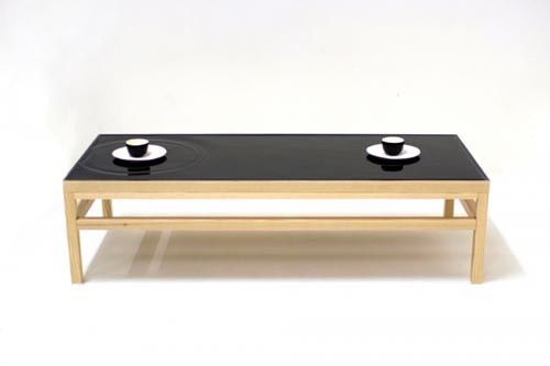 往平靜的湖里扔上一顆石子,湖面上就會(huì)泛起漣漪。設(shè)計(jì)師Hanna Chung和Jeonghwa Seo從這里獲得靈感,設(shè)計(jì)了這款漣漪茶幾。在黑色拋光茶幾上附加了一層2毫米厚的水面層,并在水面層上覆蓋一層超薄陶瓷隔層,當(dāng)上面的水杯移動(dòng)時(shí),漣漪就會(huì)出現(xiàn)。