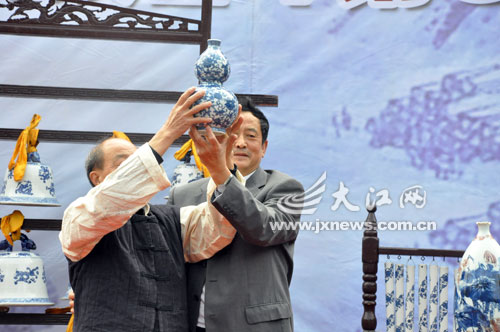 開窯后最先呈現(xiàn)在大家面前的,是一只只精美的葫蘆瓶。在眾人的驚嘆聲中,不少專家開始逐個端詳這些葫蘆瓶,并用“釉色混潤,凸顯青花瓷特點(diǎn)……”等專業(yè)術(shù)語對葫蘆瓶抱以較高評價。而隨著時間的推移,更多仿元、仿明、仿清時期的陶瓷作品從窯爐中搬出,現(xiàn)場掌聲不斷。