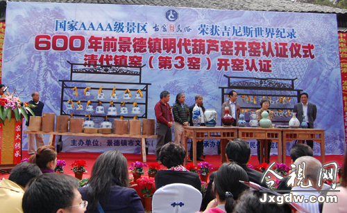 10月22日上午,景德鎮(zhèn)明代葫蘆窯和清代鎮(zhèn)窯(第3窯)復(fù)燒開(kāi)窯認(rèn)證儀式在景德鎮(zhèn)古窯民俗博覽區(qū)隆重舉行。全國(guó)政協(xié)文史和學(xué)習(xí)委員會(huì)副主任鐘起煌與眾多領(lǐng)導(dǎo)嘉賓及參加第十次地方網(wǎng)聯(lián)會(huì)議的代表一起見(jiàn)證了這一激動(dòng)人心的時(shí)刻。