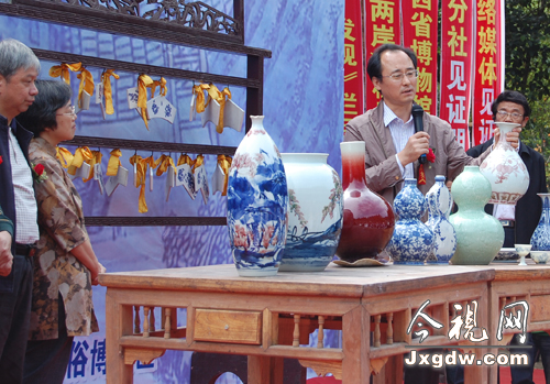 專家現(xiàn)場(chǎng)點(diǎn)評(píng)古窯燒制出的陶瓷。