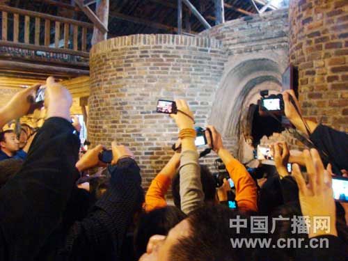 記者們紛紛在首先開(kāi)窯的葫蘆窯前搶拍