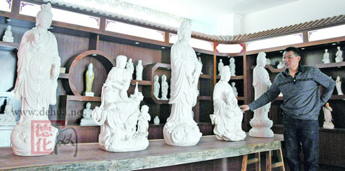 作為千年瓷都,瓷雕是世界藝術(shù)園林里的一朵奇葩,也是德化瓷都藝人們生生不息的生命和靈魂。如今,面對(duì)國(guó)外經(jīng)濟(jì)環(huán)境影響和國(guó)內(nèi)節(jié)能減排措施實(shí)施的到位,傳統(tǒng)瓷雕如何提升“含金量”已成為亟需解決的問題!那么,德化傳統(tǒng)雕塑的發(fā)展能否“破繭化蝶”?政府又采取哪些鼓勵(lì)措施?記者為此作了一番探訪。