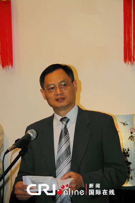 中國駐印度大使張炎向來賓介紹陶瓷展情況