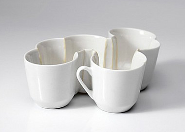這是瑞典藝術(shù)家Kjell Rylander的陶瓷藝術(shù)品,它們使用了茶杯和咖啡杯等餐具做成,其中不少是用二手或是破碎了的盤子,新奇又富有創(chuàng)造力