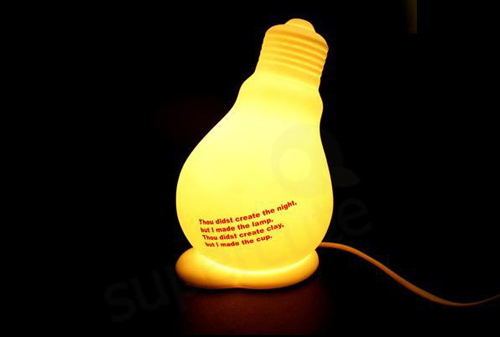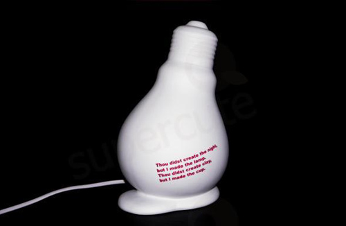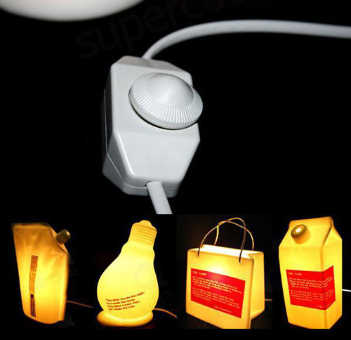 很有feeling的透光陶瓷燈,一共有四種款型:燈泡、購物袋、牛奶盒、水袋。放一盞在家里,絕對吸引眼球,柔和的光線,漂亮的曲線外形,襯托創(chuàng)意的生活空間!