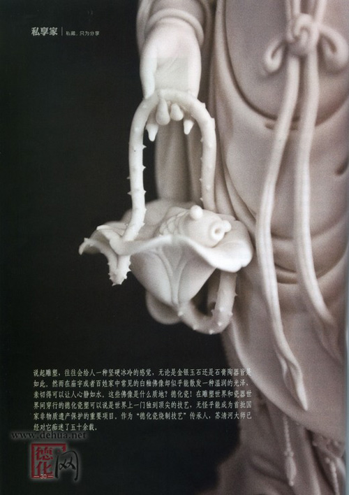 說起雕塑,往往會給人一種堅硬冰冷的感覺,無論是金銀玉石還是陶器皆是如此。然而在廟宇或者百姓家中常見的白釉佛像卻似乎能散發(fā)一種溫潤的光澤,親切得可以讓人心靜如水。這些佛像是什么質地?德化瓷!在雕塑世界和瓷器世界間穿行的德化瓷塑可以說是世界上一門獨到頂尖的技藝,無怪乎能成為首批國家非物質遺產保護的重要項目。作為“德化瓷燒制技藝”傳承人,蘇清河大師已經對它癡迷了五十余載。