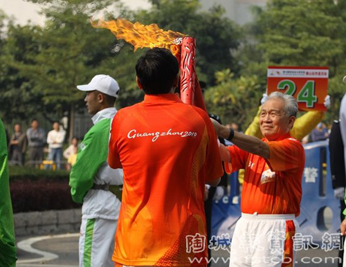 陶藝大師劉澤棉點(diǎn)燃圣火火炬