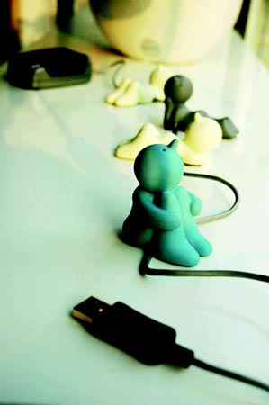 MR.P從今年3月開始悄悄躥紅。都是從電腦衍生出來的小東西,其實可有可無,但年輕人喜歡。鼠標、鍵盤的線在桌上攪成一團,把它們理一理,每一根線上放上幾個壓線小人。托著腮幫的,翹著二郎腿的,各個栩栩如生。