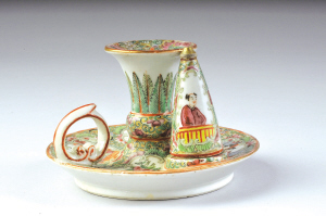 廣彩開窗人物花鳥紋燭臺(tái)。光緒年間