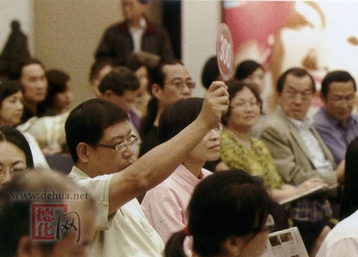 這兩年德化瓷在收藏市場(chǎng)上的表現(xiàn)也充分證明了它的價(jià)值所在:2001年11月打撈自“泰興號(hào)”沉船的德化青花瓷器在德國(guó)斯圖加特公開(kāi)拍賣(mài),總成交額高達(dá)2240萬(wàn)德國(guó)馬克,在世界拍賣(mài)史上創(chuàng)下了空前的紀(jì)錄。2005年12月在上海博海的拍賣(mài)會(huì)上明成化的一個(gè)德化窯雙耳香爐再次以187萬(wàn)的高價(jià)引得世人關(guān)注。2006年春拍上海敬華推出了一件清末民初名家許云麟的德化窯騎獅觀音,成交價(jià)為33萬(wàn)元;2007年香港蘇富比春拍上,一尊清代德化白窯如來(lái)佛立像也拍出了96萬(wàn)的高價(jià)。同年,深圳第四屆文博會(huì)的中國(guó)工藝美術(shù)大帥作品拍賣(mài)專(zhuān)場(chǎng)上已故大師許興泰的“渡海觀音”拍出了60萬(wàn)元,09年在“中國(guó)瓷都德化窯陶瓷名家名作展”上中國(guó)工藝美術(shù)大師蘇清河的“11吋坐蓮花觀音”拍得了45萬(wàn)元。今年一尊18世紀(jì)的德化窯觀音立像在北京華辰春拍上創(chuàng)出了78.4萬(wàn)的好成績(jī)。而在剛結(jié)束不久的中國(guó)福州海峽版權(quán)(創(chuàng)意)產(chǎn)品精品博覽交易會(huì)的專(zhuān)場(chǎng)拍賣(mài)會(huì)上,許興泰的生前代表作之一《渡海觀音》更是以260萬(wàn)元?jiǎng)?chuàng)下了今年德化瓷的最高紀(jì)錄!此外在國(guó)外的收藏市場(chǎng)中,德化瓷也一直非;钴S,是蘇富比和佳士得的?,往往有中國(guó)藝術(shù)品拍賣(mài)專(zhuān)場(chǎng)就會(huì)有德化瓷亮相,追捧者也很多,尤其是日本、歐洲的藏家甚至為它轉(zhuǎn)場(chǎng)世界各地的拍賣(mài)行,只要明代的德化瓷塑一露面,立刻出高價(jià)搶拍。這些國(guó)際藏家的介入,無(wú)疑使德化瓷的價(jià)格更是扶搖直上。