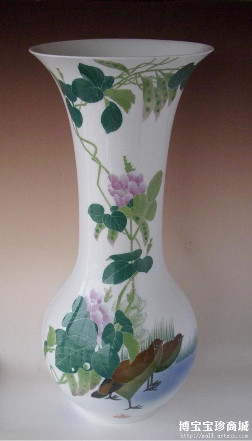 這尊醴陵釉下五彩瓷松鶴瓶就是釉下五彩瓷中的精品,是由吳尚夫大師所作,收藏于博寶寶珍商城。瓶體潔白如玉,造型獨(dú)特,線條流暢,其釉面晶瑩潤澤,色彩沉穩(wěn)典雅,構(gòu)圖生動自然,工藝之精湛,令人嘆為觀止,非常具有欣賞和投資價值。吳尚夫大師從事陶瓷美術(shù)工作三十多年,精通各種陶瓷繪畫技藝,作品曾被中南海、天安門、北京飯店等知名場所陳設(shè)收藏,其中部分作品被黨和國家領(lǐng)導(dǎo)人選作外交禮品,贈送國際友人。