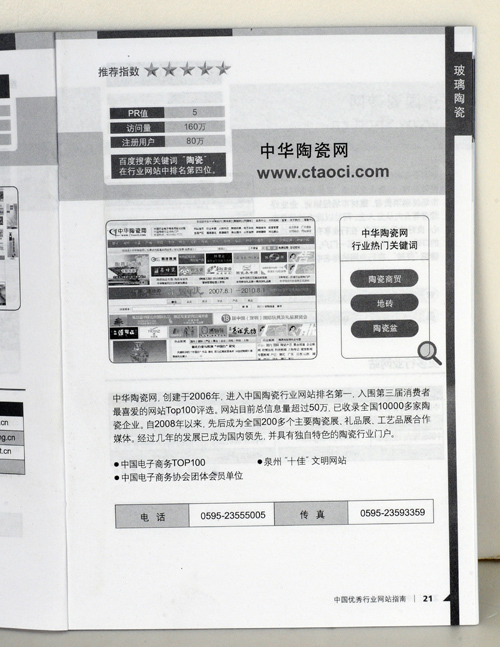 中華陶瓷網(wǎng)入選《中國(guó)優(yōu)秀行業(yè)網(wǎng)站指南》