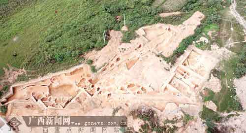 窯址發(fā)掘現(xiàn)場航拍圖。桂林鑫鷹公司航拍 廣西文物考古研究所供圖