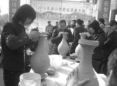 為了進(jìn)一步弘揚(yáng)地域文化,打造和宣傳耀州陶瓷的整體品牌,使優(yōu)秀陶瓷技能人才脫穎而出,激勵(lì)和引導(dǎo)廣大陶瓷職工鉆研技術(shù),11月10日上午,在著名的耀州瓷發(fā)源地——銅川市耀州區(qū)董家河鎮(zhèn)舉辦了一次別開生面的“銅川市職業(yè)技能大賽陶藝比賽”。(記者 吳穹 張紅娟)