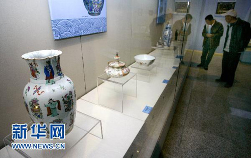 11月16日,參觀者在參觀展出的文物。當日,從廣州博物館引進的《海貿(mào)遺珍———古代廣州外銷藝術(shù)品展》在新疆博物館亮相。這次展出的99件(套)文物是十八、十九世紀海路貿(mào)易的外銷商品或舶來品,包括陶瓷、絲綢、珠飾、象牙雕刻制品等。此次展出將持續(xù)到2011年2月。
