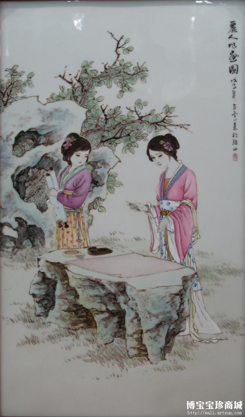 李一來粉彩《麗人作畫圖》瓷板 (圖片來源:博寶寶珍商城)